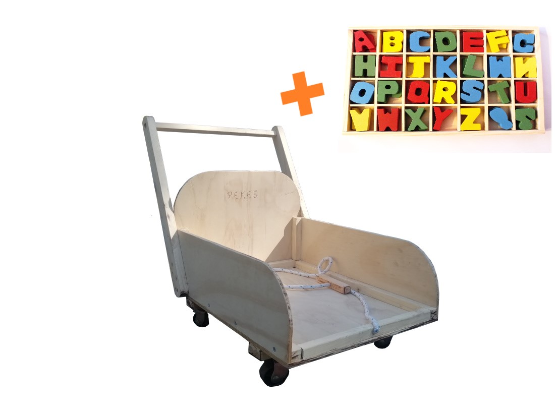 Carro de Arrastre Madera + Abecedario Doble de Madera de Regalo